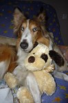 Обнимашки с игрушечной собачкой