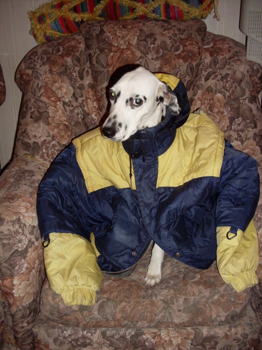 у-у-у-у-у! Правда вместо него выдали хозяйскую куртку. Это на время пока одеяльце не высохнет.